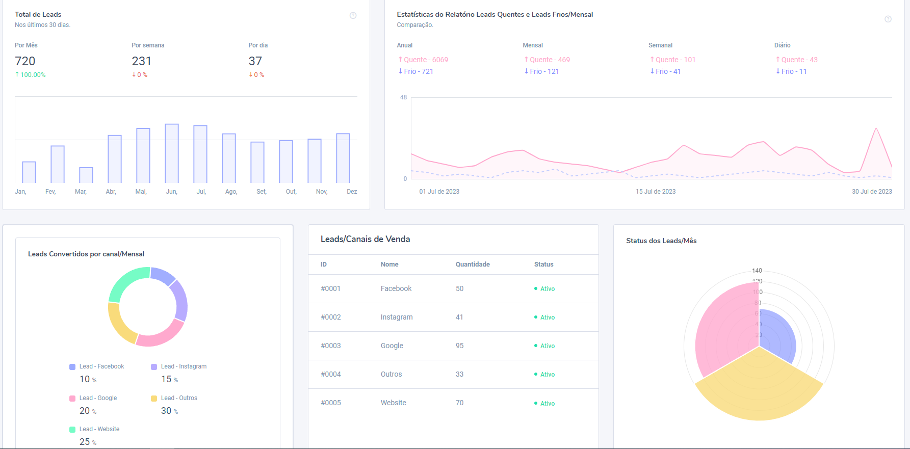 Número de Leads convertido por canais, dados gerais etc.